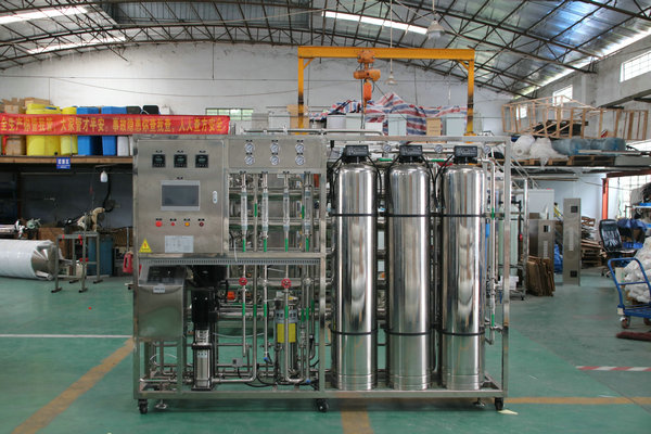 应用范围:反渗透(简称RO)是膜分离技术的一种。其原理是:用足够的压力使溶液中的溶剂(通常指水)通过反渗透膜分离出水,因它的运行与自然界的正常渗透过程相反,故称反渗透(或逆渗透)。随着膜技术的发展,膜性能不断提高,反渗透技术将发展成为进行分离、分级、提纯和富集的化工分离新技术,经过处理后的水一般能达到96%-99%的脱盐率,综合发挥有效的作用,清除原水中的泥沙、悬浮物、胶体、有机物、重金属、可溶性固体、细菌、病毒、热源和其他的有害杂质,仅保留水分子和溶解氧。