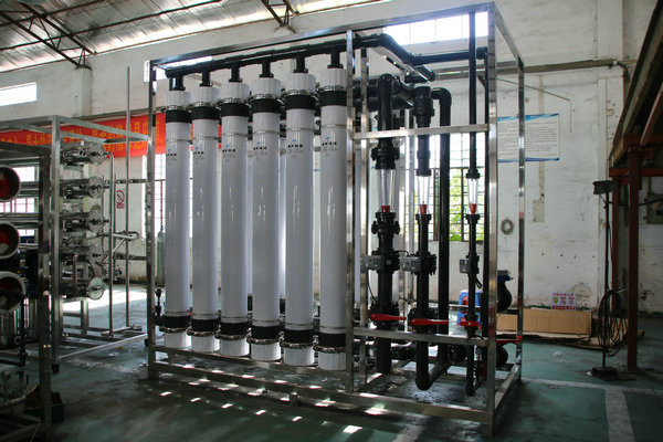 应用范围:超滤是采用中空纤维过滤的新技术,配合三级预处理过滤清除自来水中的杂质;超滤微孔小于0.01微米,能彻底过滤水中的细菌、铁锈、胶体等有害物质,保留水中原有的微量元素和矿物质。饮用水;大工业水处理;中水、污水、废水处理回用;食品、饮料、医药、电子、纺织、印染、造纸等其他轻工业。