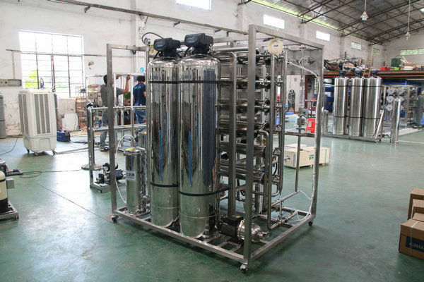 反渗透设备采用反渗透的渗透过滤工艺,是一种现代新型的纯净水处理技术。反渗透借助于选择透过(半透明)性膜的功能以压力为推动力的膜分离技术,当系统中所加的压力大于进水溶液渗透压时,水分子不断地透过膜,经过产水流道流入中心管,然后在一端流出水中的杂质,如离子、有机物、细菌、病毒等,被截留在膜的进水侧,然后在浓水出水端排出,从而达到分离净化目的。