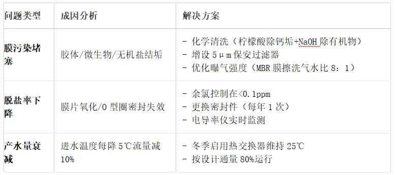 膜分离系统故障(反渗透/超滤/MBR)