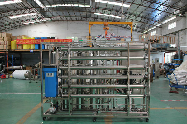 应用范围:反渗透(简称RO)是膜分离技术的一种。其原理是:用足够的压力使溶液中的溶剂(通常指水)通过反渗透膜分离出水,因它的运行与自然界的正常渗透过程相反,故称反渗透(或逆渗透)。随着膜技术的发展,膜性能不断提高,反渗透技术将发展成为进行分离、分级、提纯和富集的化工分离新技术,经过处理后的水一般能达到96%-99%的脱盐率,综合发挥有效的作用,清除原水中的泥沙、悬浮物、胶体、有机物、重金属、可溶性固体、细菌、病毒、热源和其他的有害杂质,仅保留水分子和溶解氧。