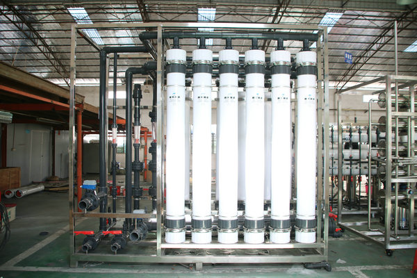 应用范围:超滤是采用中空纤维过滤的新技术,配合三级预处理过滤清除自来水中的杂质;超滤微孔小于0.01微米,能彻底过滤水中的细菌、铁锈、胶体等有害物质,保留水中原有的微量元素和矿物质。饮用水;大工业水处理;中水、污水、废水处理回用;食品、饮料、医药、电子、纺织、印染、造纸等其他轻工业。